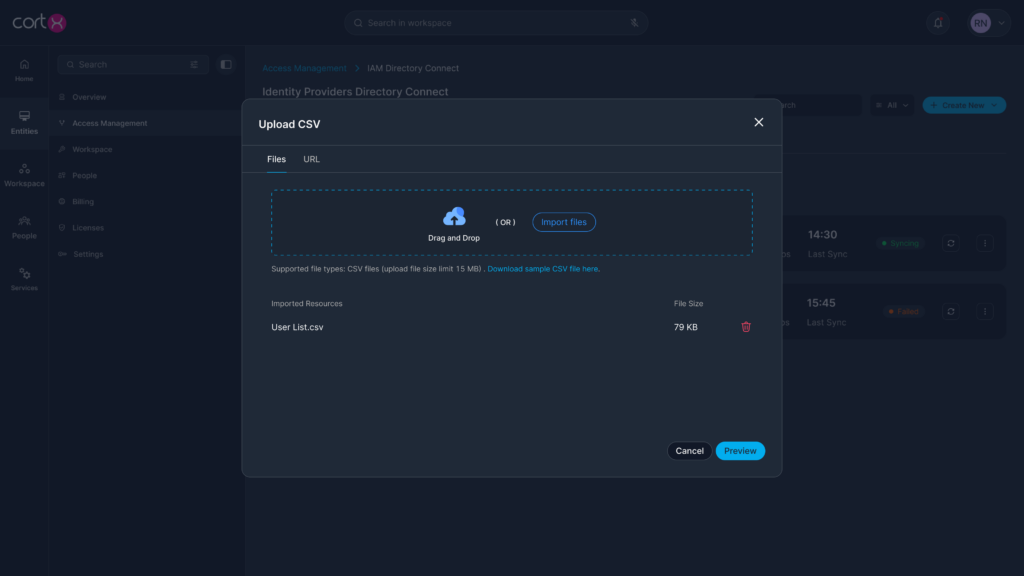 All users listed in the CSV are imported into the mapped Cortx User Groups.